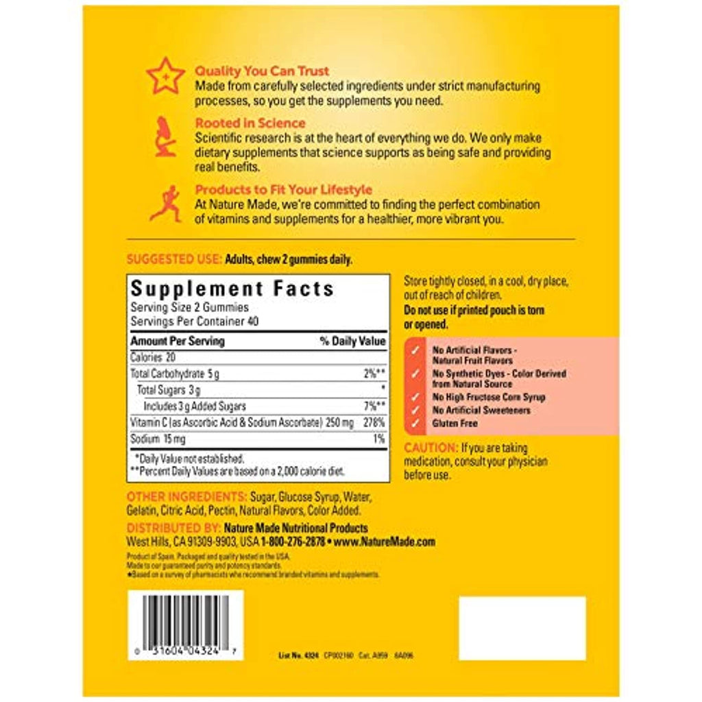 • Nature Made 비타민C 250mg 젤리 80개입 (40일 분량) - 밀봉이 가능한 형태입니다