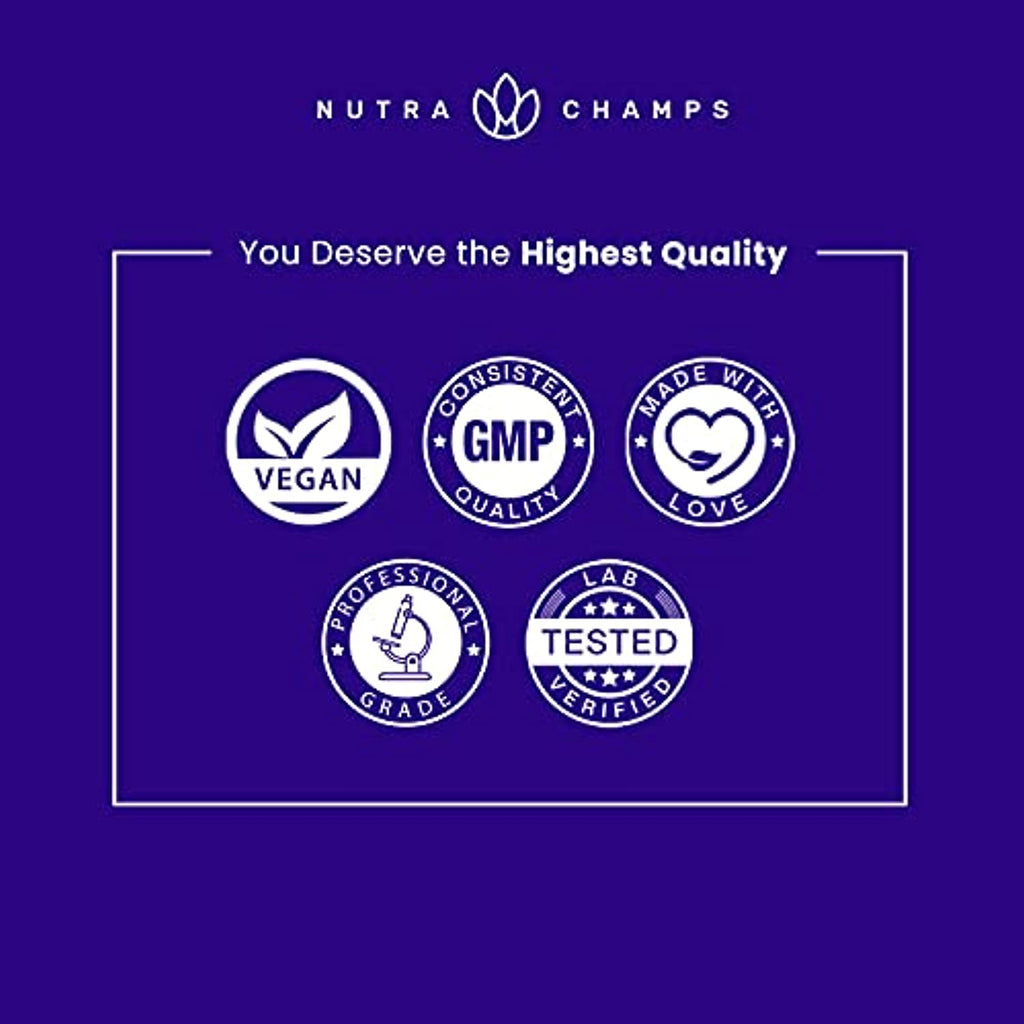 • 모든 NutraChamps 보충제는 최첨단 cGMP 시설에서 제조되며, 가장 순수하고 안전한 최고 품질의 제품을 받을 수 있도록 실험실 테스트를 거쳤습니다.